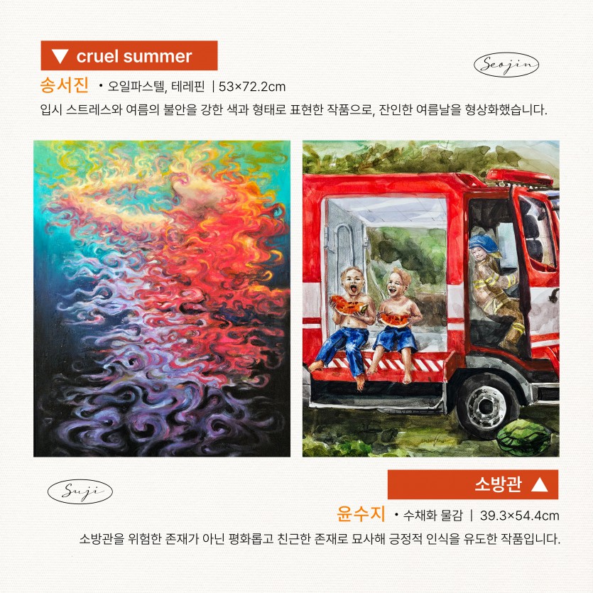 해석장학문화재단 고등부 미술장학생 24인 작품전 "별별별 2부 전시" 페이지 정보 작성자 최고관리자 댓글 0건 조회 1,027회 작성일 25-02-04 14:06 목록 본문 이전글ART CLASS_장학생&아티스트 연계프로그램 25.02.12 다음글해석장학생 재능기부 원데이클래스 현장 : 김유빈 장학생 25.01.21 댓글 0 댓글목록 등록된 댓글이 없습니다.